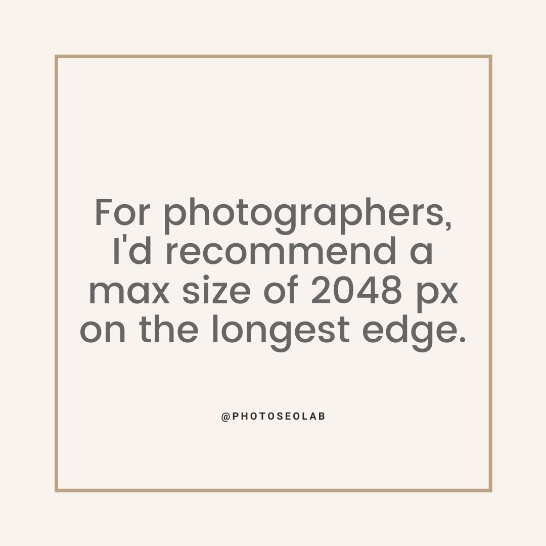 For photographers, where image quality is especially important, I’d recommend uploading a full sized image and instead size photos at a maximum size of 2048 pixels on the longest edge. For non-photography websites, where sharpness in the details may be a bit less critical, 1500 pixels on the longest edge is sufficient. The absolute maximum should be 2560 pixels on the longest edge.